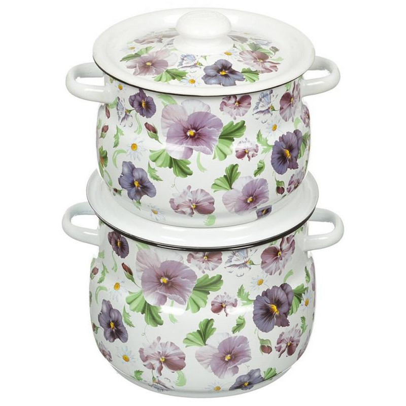Набор кастрюль эмал. (4 предмета) белый Анютины глазки деколь на крышке ЭМАЛЬ (СИБ.ТОВАРЫ) N10B54