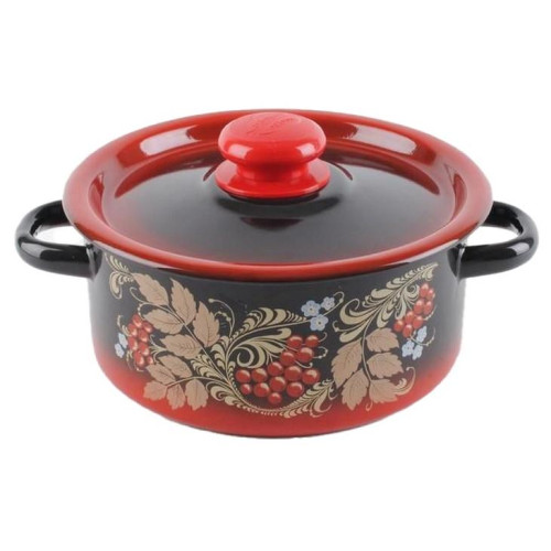 Кастрюля цилиндр, 2.0л эмалированая декор красно-черная ЭМАЛЬ (СИБ.ТОВАРЫ) С161038