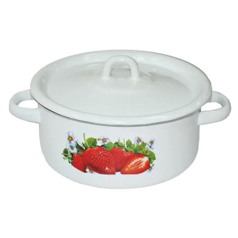 Кастрюля (2л, цилиндр) эмал., клубника, с петлей ЭМАЛЬ (СИБ.ТОВАРЫ) С161059