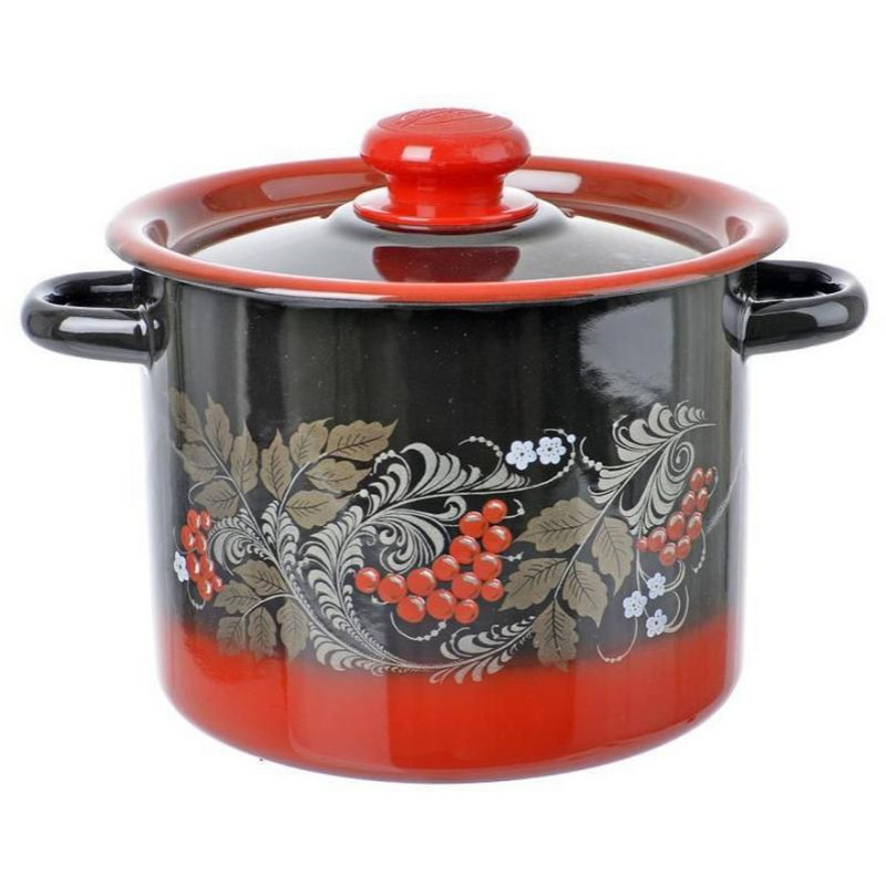 Кастрюля (3.5л, цилиндр) эмал., декор красно-черная ЭМАЛЬ (СИБ.ТОВАРЫ) С161238