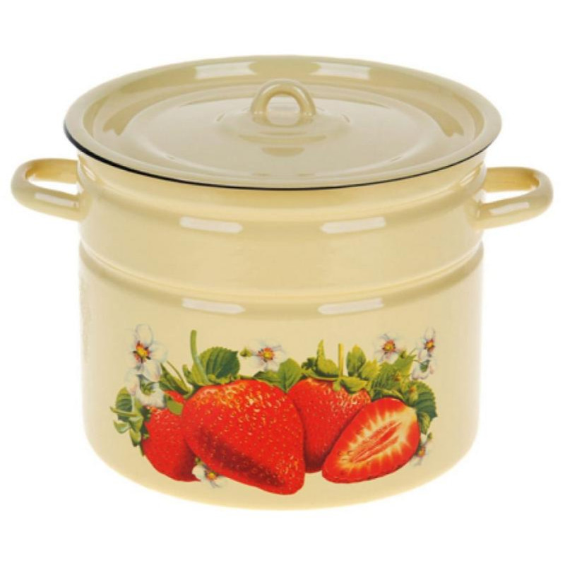 Кастрюля цилиндр 9.0л эмал. деколь Клубника садовая палевая с петлей ЭМАЛЬ (СИБ.ТОВАРЫ) С1622П59