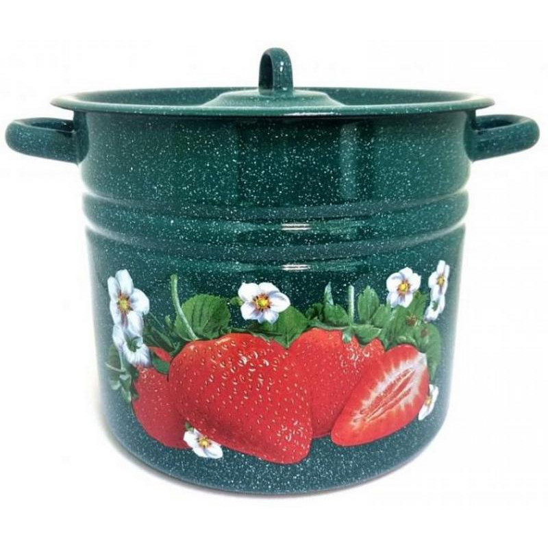 Кастрюля (9.0л, цилиндр) эмал., деколь Клубника садовая зеленый рябчик, с петлей ЭМАЛЬ (СИБ.ТОВАРЫ) С1622з59