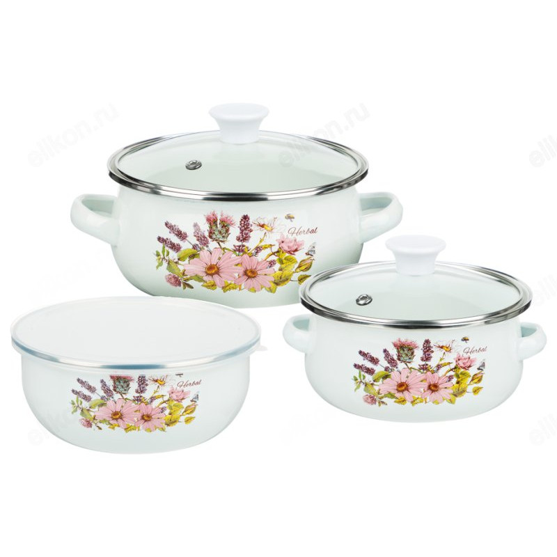 Набор посуды эмаль Ботаника 6пр 894-011 мини 0,7+1,1+0,7л