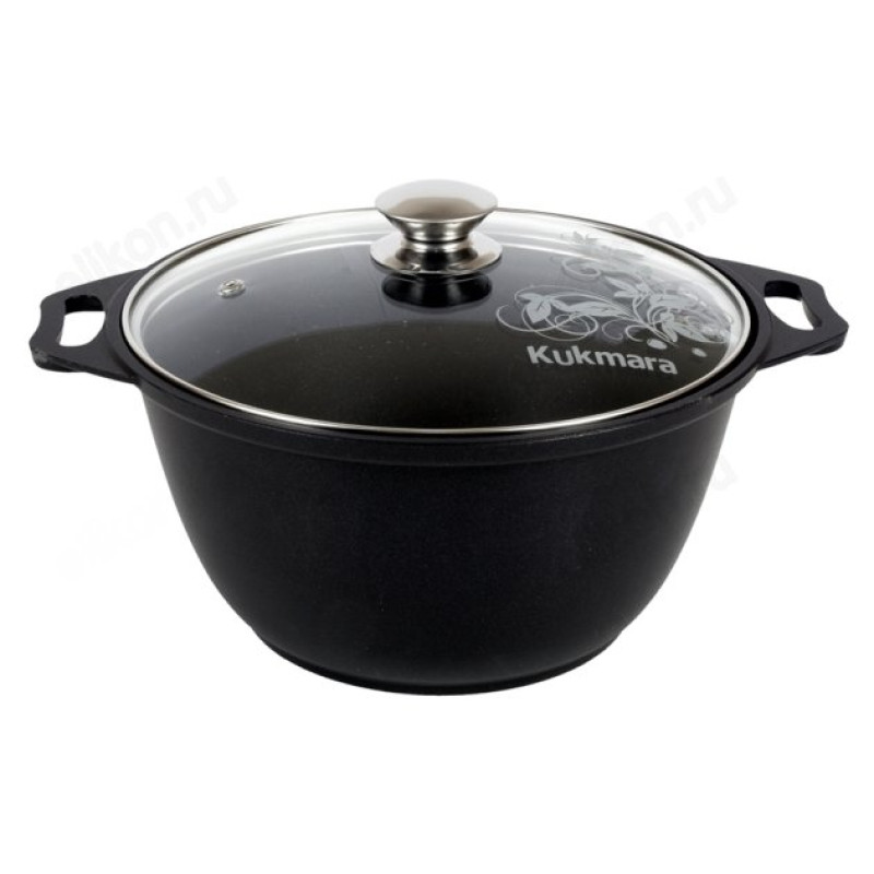 Продукция Kukmara изготовлена из литого алюминия и покрыта немецким высококачественным антипригарным покрытием на водной основе, усиленным сверхпрочными минеральными частицами. Особенности кастрюли "Kukmara": возможность использования минимального количества жира; антипригарное покрытие наносится методом напыления, который гарантирует исключительную стойкость покрытия при эксплуатации; высокая теплопроводность и эргономичность; подходит для всех типов плит, кроме индукционных. Кастрюля "Kukmara" позволит превратить обыкновенный процесс приготовления пищи в приятное и легкое занятие для любой хозяйки.