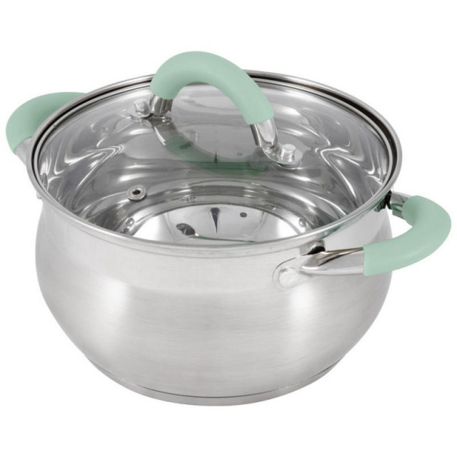 Кастрюля MENTOLO (3.6л) из нерж.стали с крышкой, ручки с силиконом MALLONY 103577