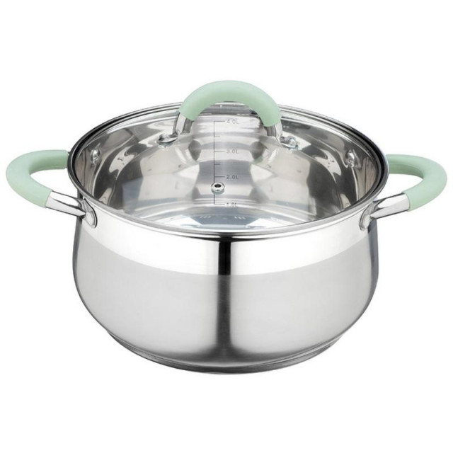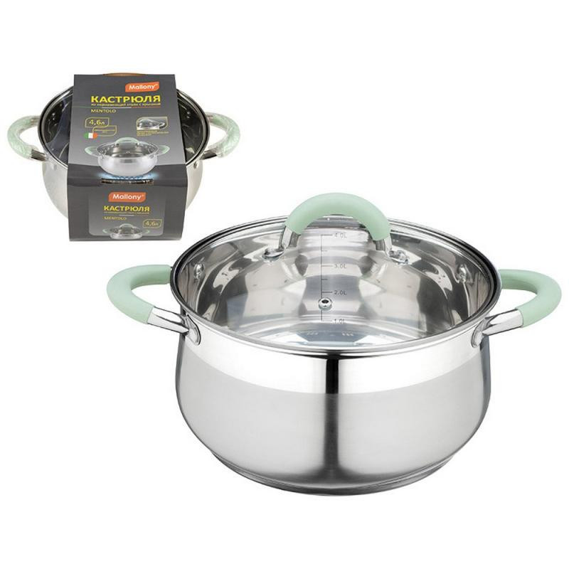 Кастрюля MENTOLO (4.6л) из нерж.стали с крышкой, ручки с силиконом MALLONY 103578