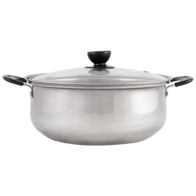 2.9л, (23.5х9.5см), нерж.сталь, дно однослойное, зеркальная полировка внутри и снаружи корпуса, отметка литража, крышка стекло, ручка нерж.сталь/нейлон
