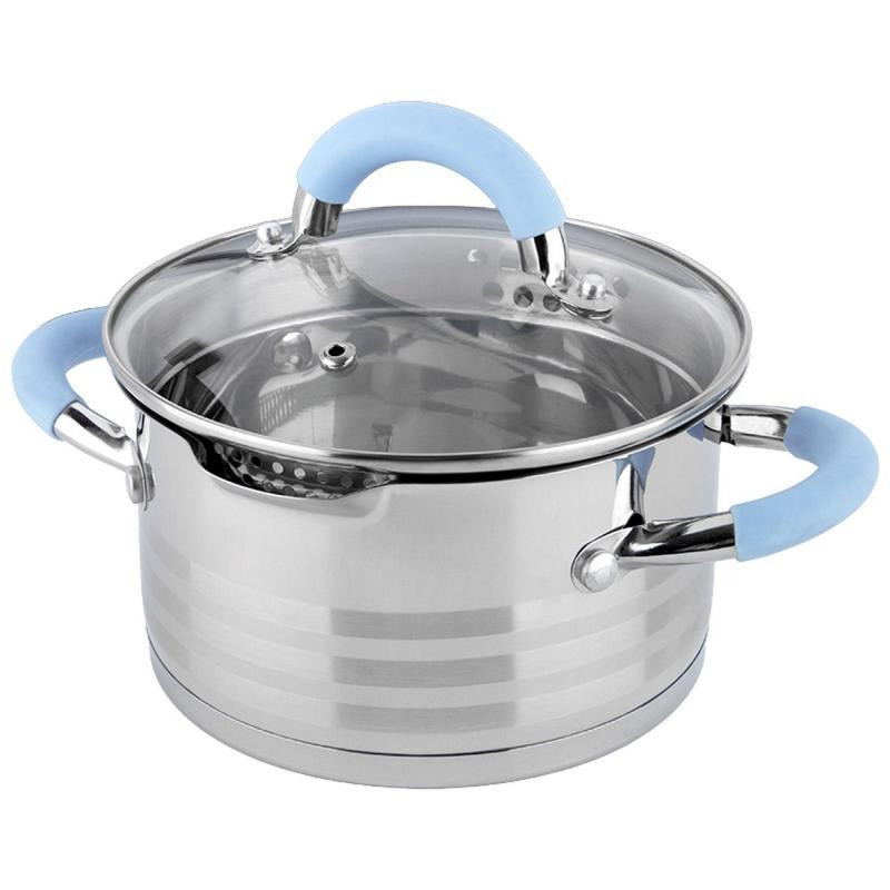 1, 8л (16см), нерж.сталь, крышка-дуршлаг, 2 носика для слива, 5-тислойное капсулированное дно, подходит для всех типов плит, ручки стальные полые с покрытием из силикона