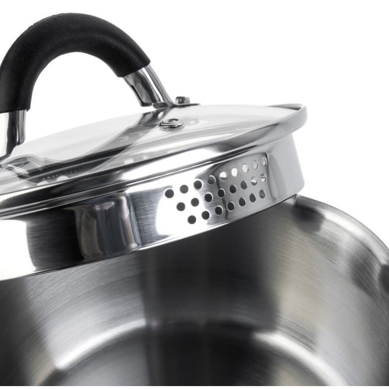 2.0л(16.5см), сталь (комбинированная полировка), крышка стекло/сталь, ручки сталь/силикон, шкала литража, сливной носик, подходит для всех видов плит и посудомоечной машины