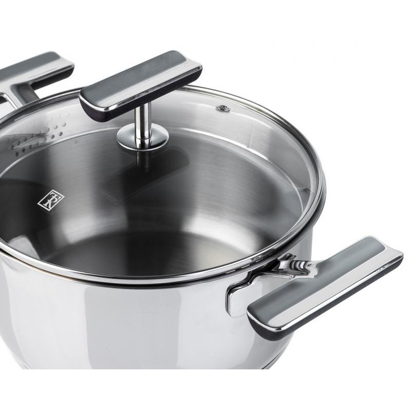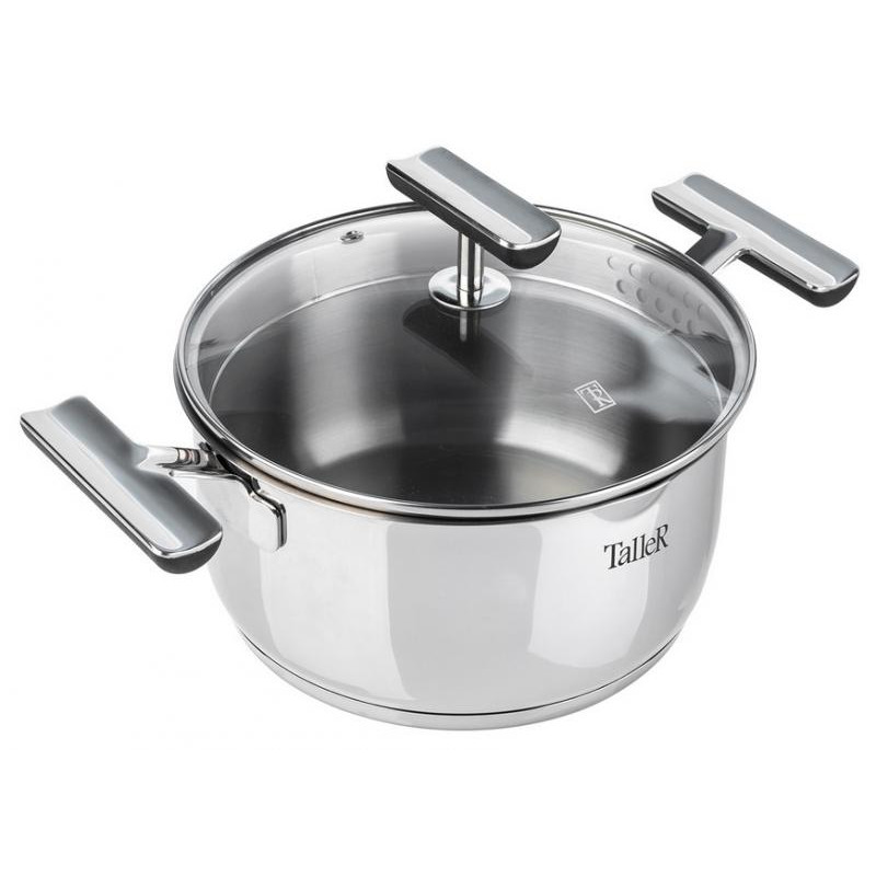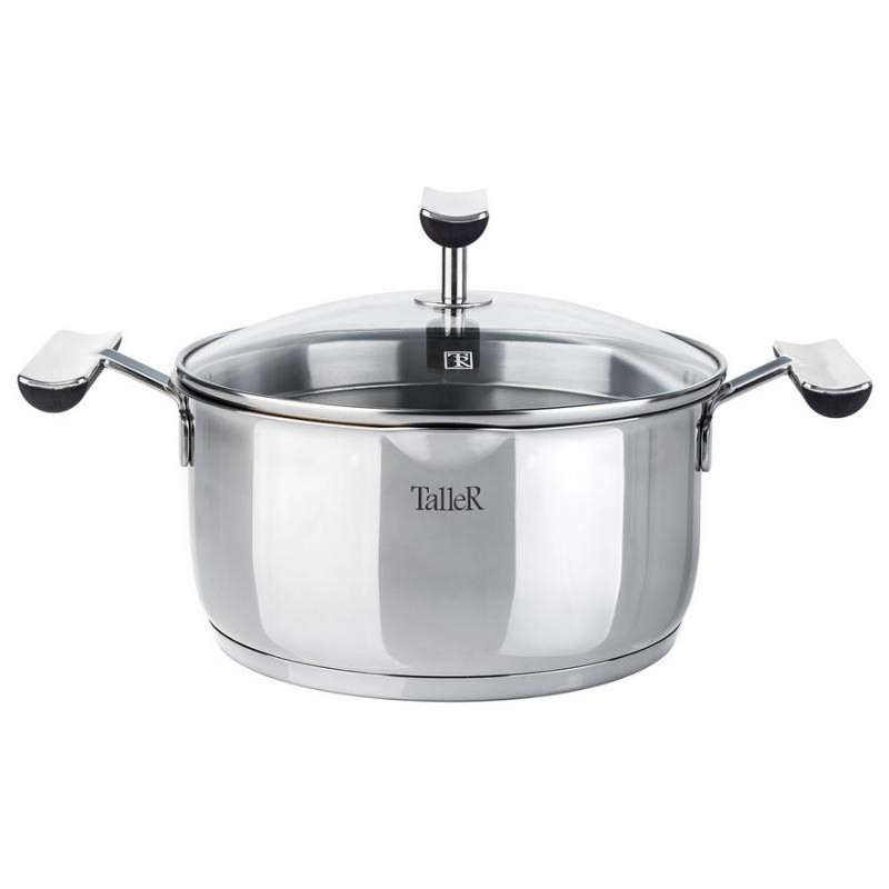 2.1л(18см), сталь (зеркальная полировка), крышка стекло, ручки сталь/силикон, шкала литража, подходит для всех видов плит и посудомоечной машины,