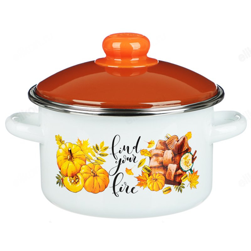 Эмалированная кастрюля с осенним рисунком обязательно порадует вас своим стильным дизайном и функциональностью.