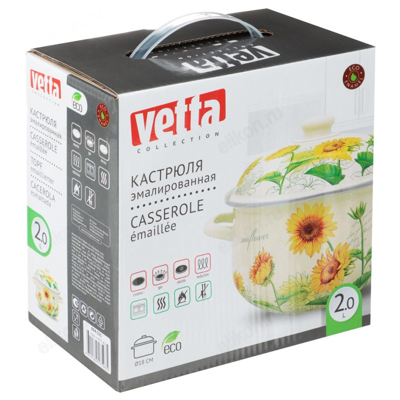 Эмалированная кастрюля Vetta «Подсолнухи» отвечает всем заявленным критериям.