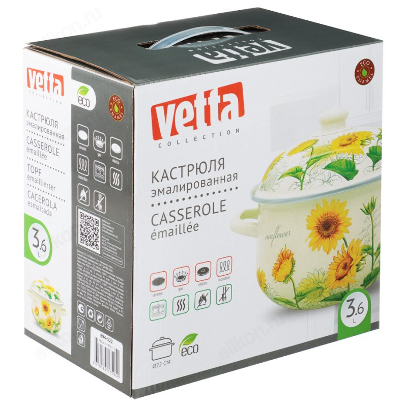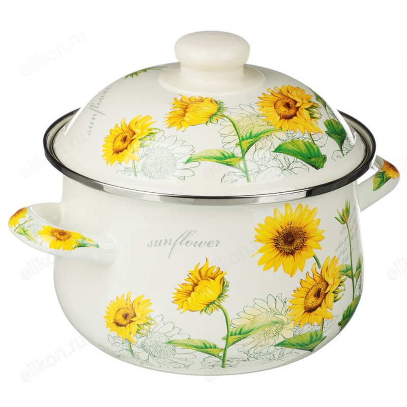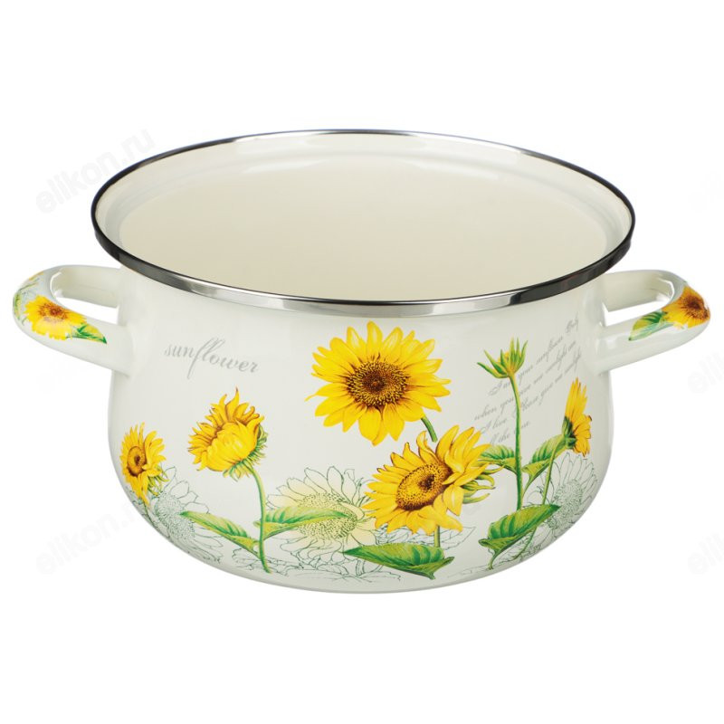 Эмалированная кастрюля Vetta «Подсолнухи» отвечает всем заявленным критериям.