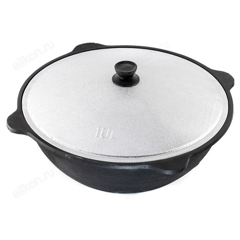 Казан чугунный с крышкой, цвет черный, ручки литые, крышка алюминиевая.