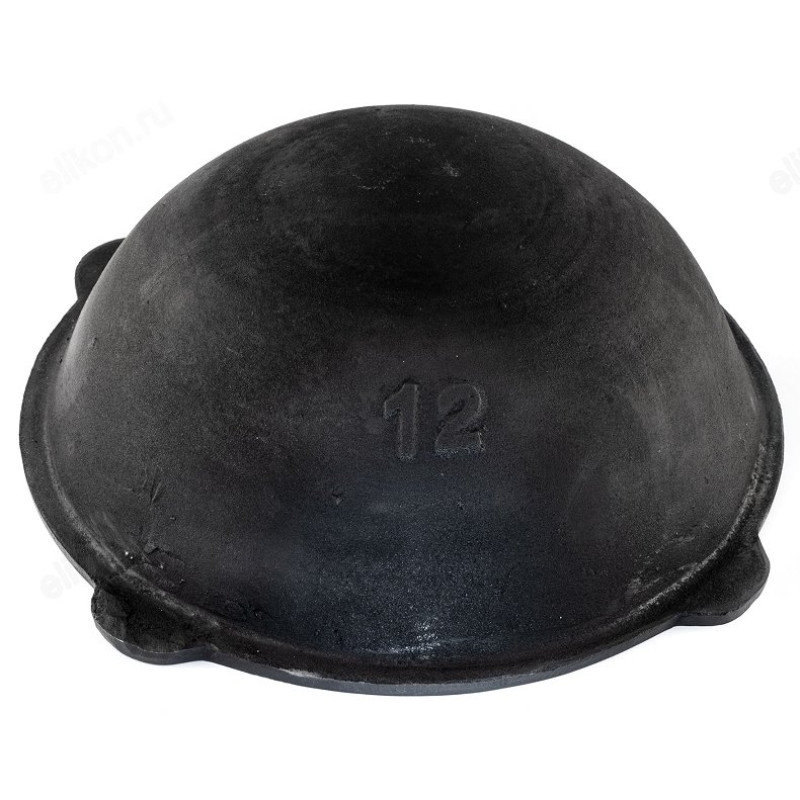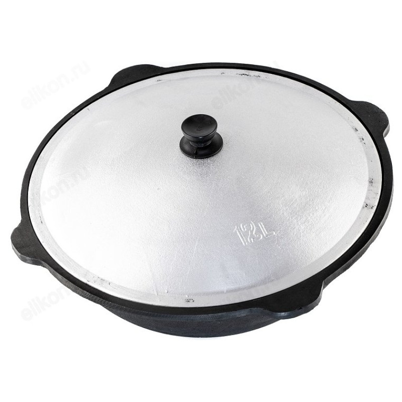 Казан чугунный с крышкой и круглым наружным дном.