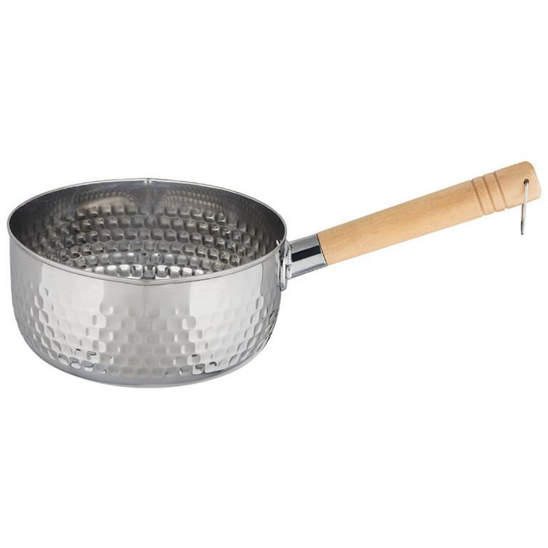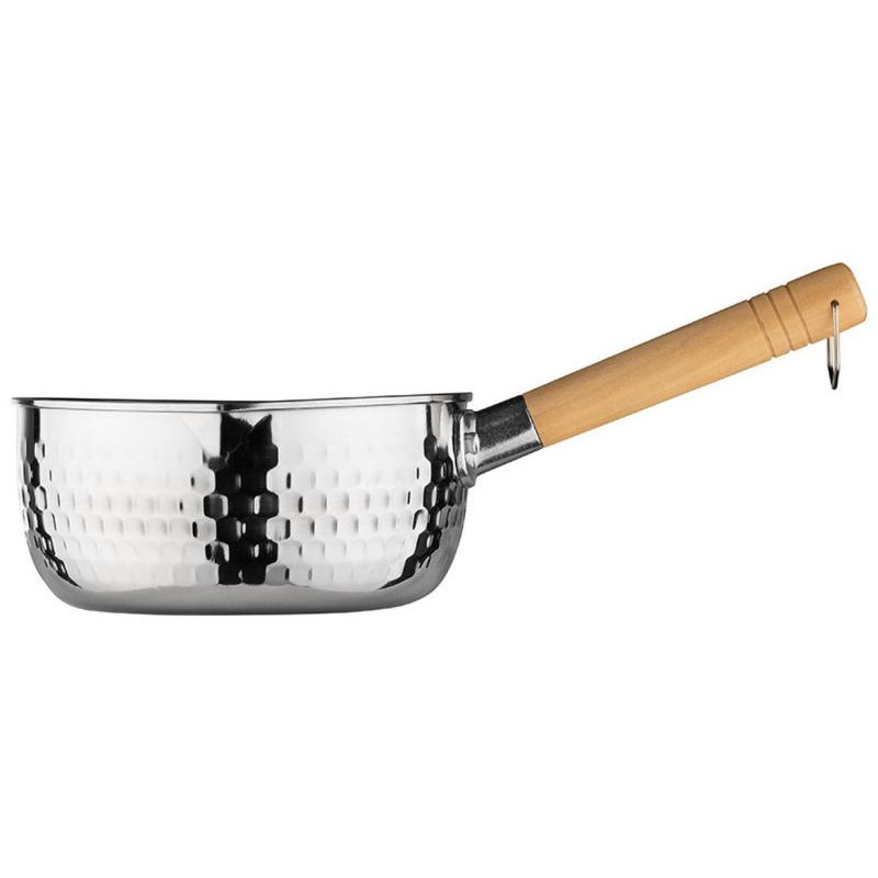 1.8л (18см), нерж.сталь, деревянная съемная ручка с подвесом, рифленый корпус, без крышки, 2 носика для слива, зеркальная полировка, подходит для индукции