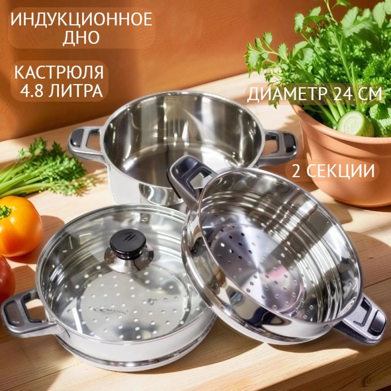 Объём кастрюли: 4.8 л (d24 см)