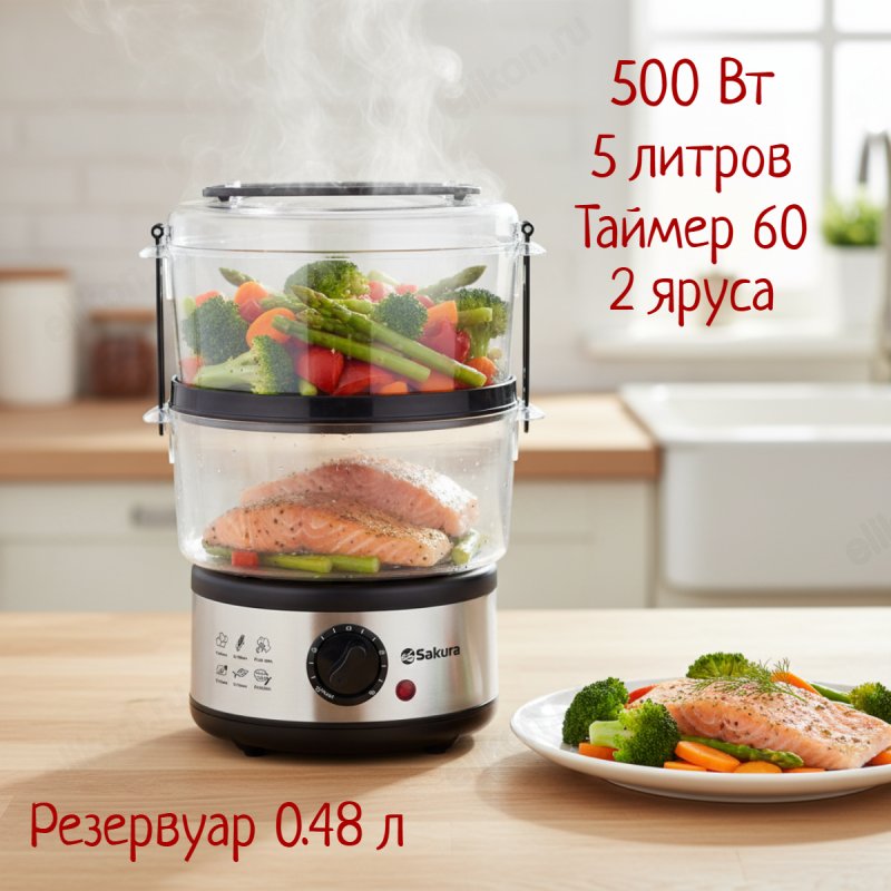 Пароварка SAKURA SA-7216-2 нерж/черн