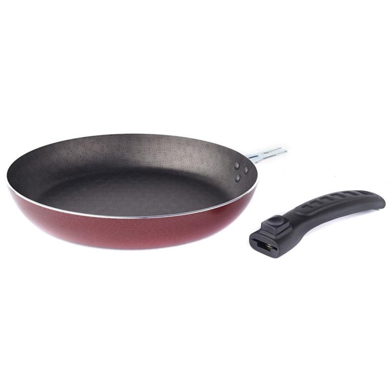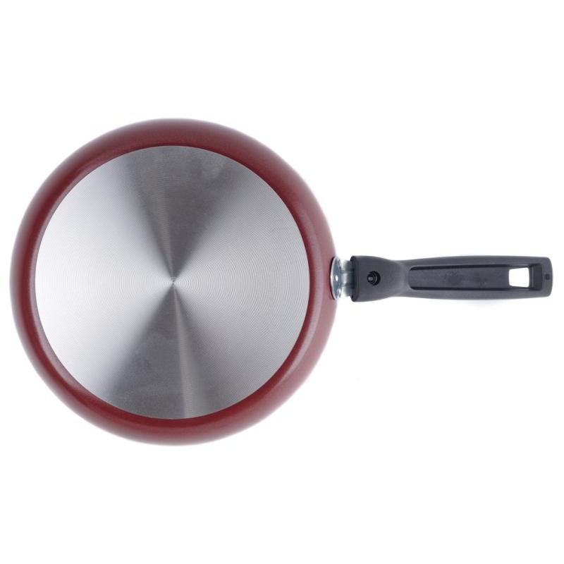 28см, алюминий (дно 1.8мм), антипригарное покрытие, крышка стекло, съемная ручка из термостойкого пластика, подходит для духовок, подходит для всех видов плит, кроме индукции, подходит для посудомоечной машины