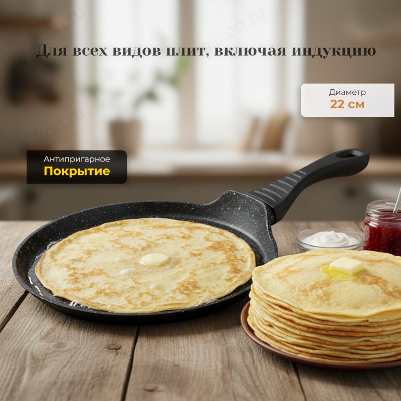 Хорошая сковорода, ничего не пригорает, удобная и блины получаются отличные)