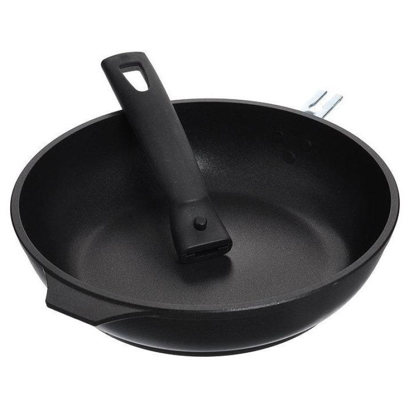 24см, литой алюминий (дно 4.5-6мм), антипригарное покрытие, съемная ручка, можно мыть в посудомоечной машине, подходит для всех плит, кроме индукции