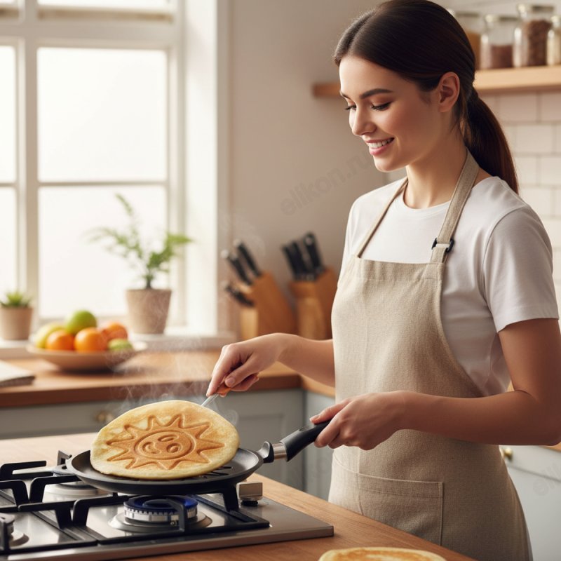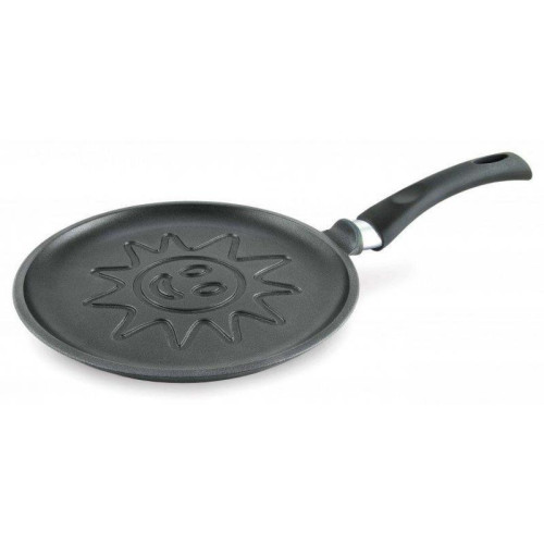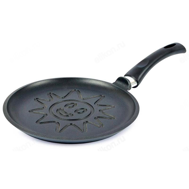 Блинные сковороды обладают необычным дном – на нем имеется текстурное изображение в виде солнышка, улыбки или кота.