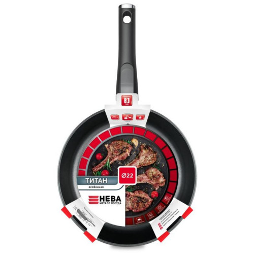 Сковорода ПОСУДА 22см титан ' Особенная' (съемная ручка) НЕВА МЕТАЛЛ 9022