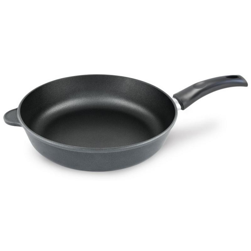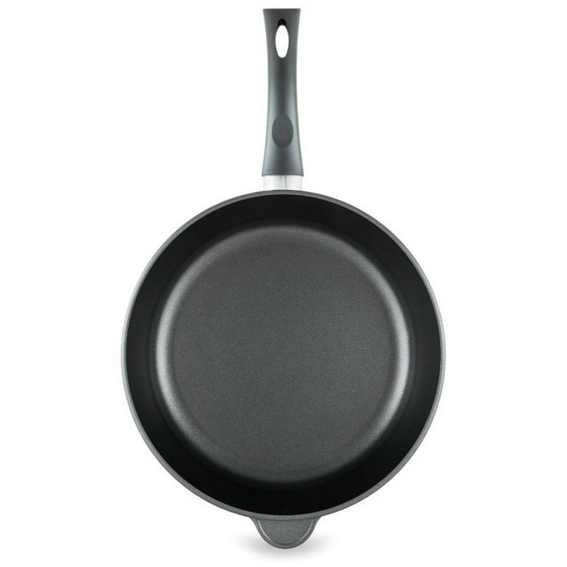 28см, литой алюминий (дно 6мм), антипригарное покрытие ТИТАН, не боится царапин, несъемная ручка бакелит, подходит для всех видов плит, кроме индукции, подходит для посудомоечной машины