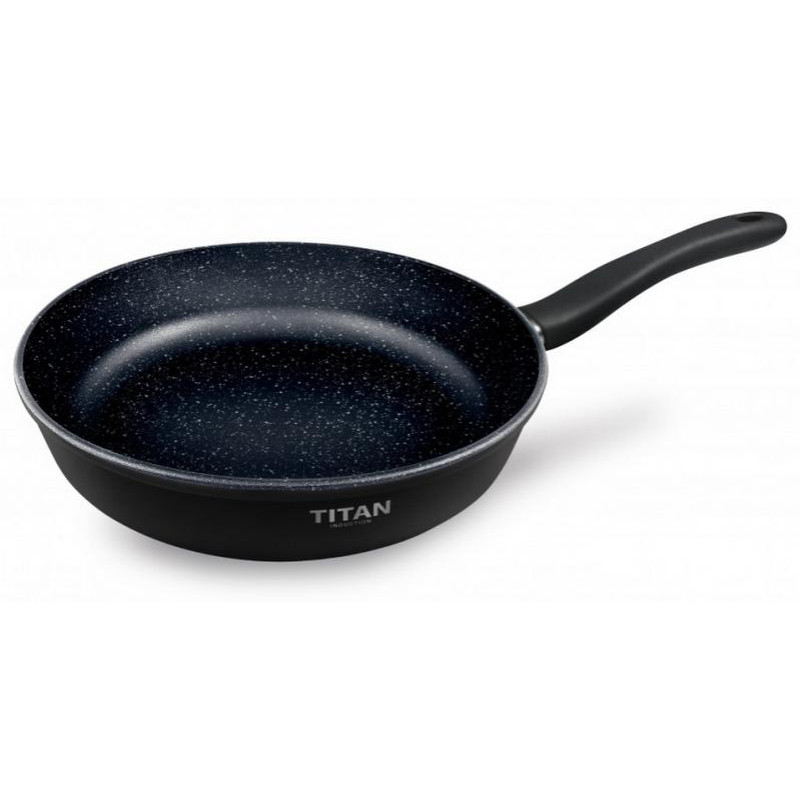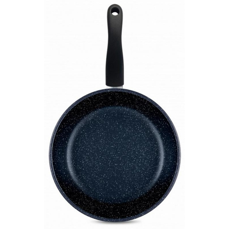24см, литой алюминий (дно 6.8мм), антипригарное покрытие, внутр.пов-ть иссиня-чёрного цвета с эффектом звездного неба, внеш.пов-ть черная с богатым матовым эффектом, ручка бакелит, подходит для всех видов плит