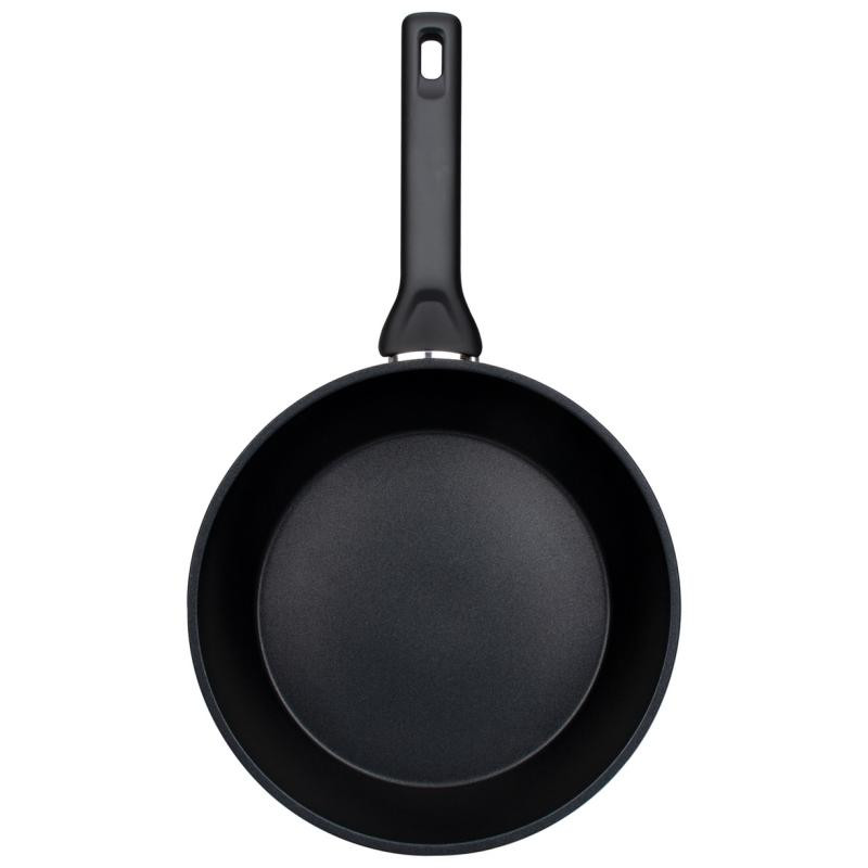 24см, высота 7.5см, алюминий (дно 4.9мм), толщина стенок 2.8мм, ручка бакелит, подходит для всех видов плит, можно мыть в посудомоечной машине без щелочных моющих средств