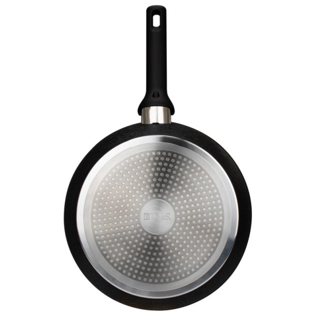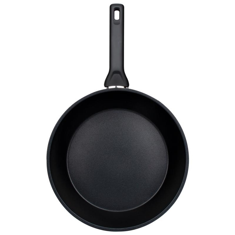 28см, высота 7.5см, алюминий (дно 4.9мм), толщина стенок 2.8мм, ручка бакелит, подходит для всех видов плит, можно мыть в посудомоечной машине без щелочных моющих средств
