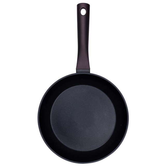 24см, высота 4.9см, алюминий (дно 3.3мм), трехслойное антипригарное покрытие, толщина стенок 3.0мм, ручка бакелит с soft-touch покрытием, подходит для всех видов плит (включая индукцию), рекомендуется ручная мойка