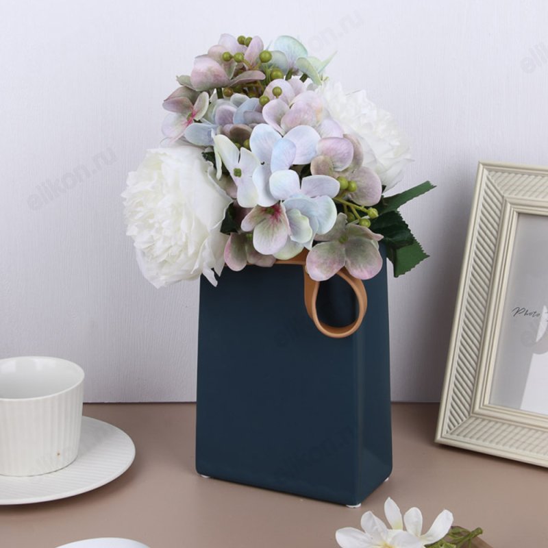Размеры вазы позволяют ей прекрасно вписаться в любое пространство, а ее форма в виде сумочки с ручками добавляет уникальности и шарма.