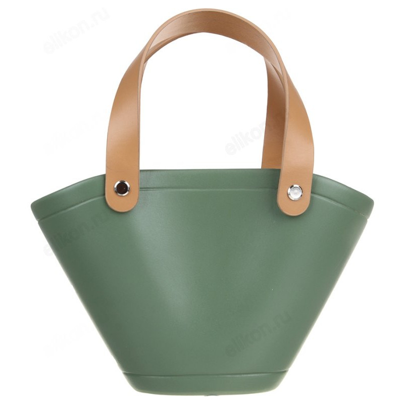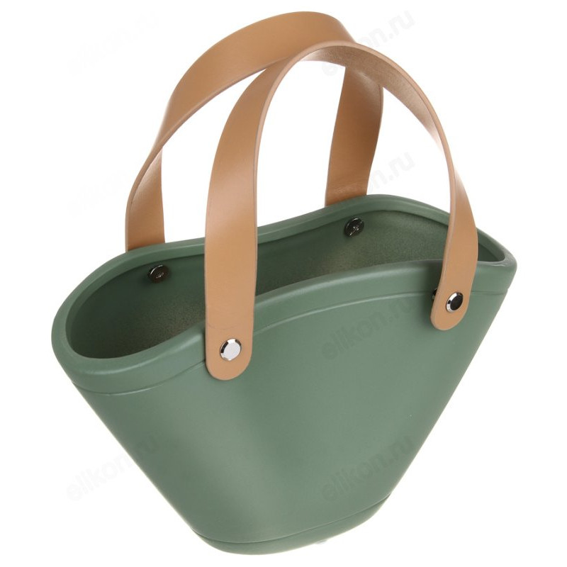 Для этого отлично подойдёт небольшая керамическая ваза в виде сумочки с ручками зеленого цвета.