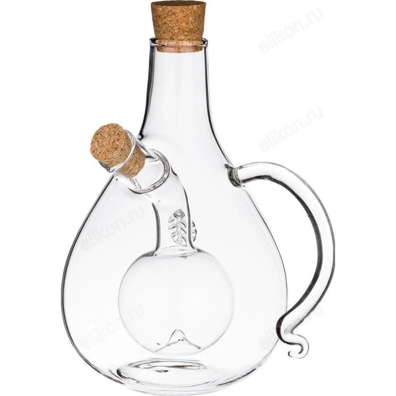 Емкость выполнена в виде двух сосудов, находящихся один в другом. При заполнении контрастными по цвету жидкостями, такую бутылку можно считать предметом декора, а не просто кухонным инвентарем.