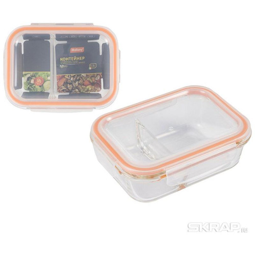 0.6л, прямоуг, с разделителем на 2 секции, боросиликатное стекло, крышка пластик,