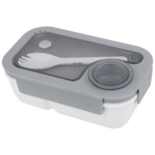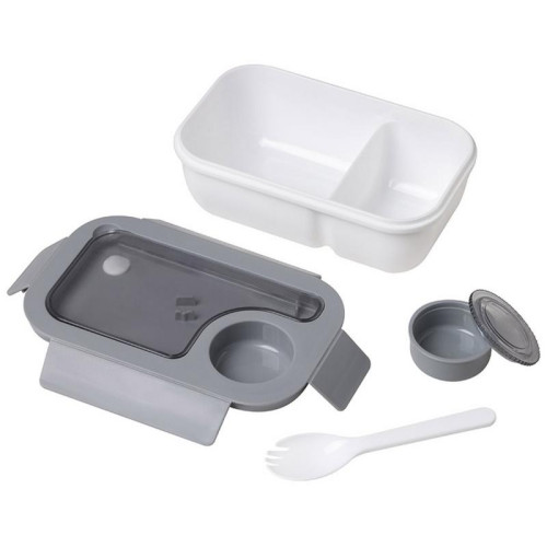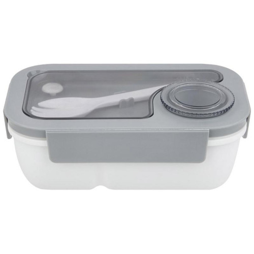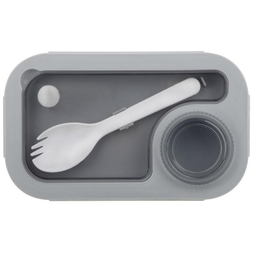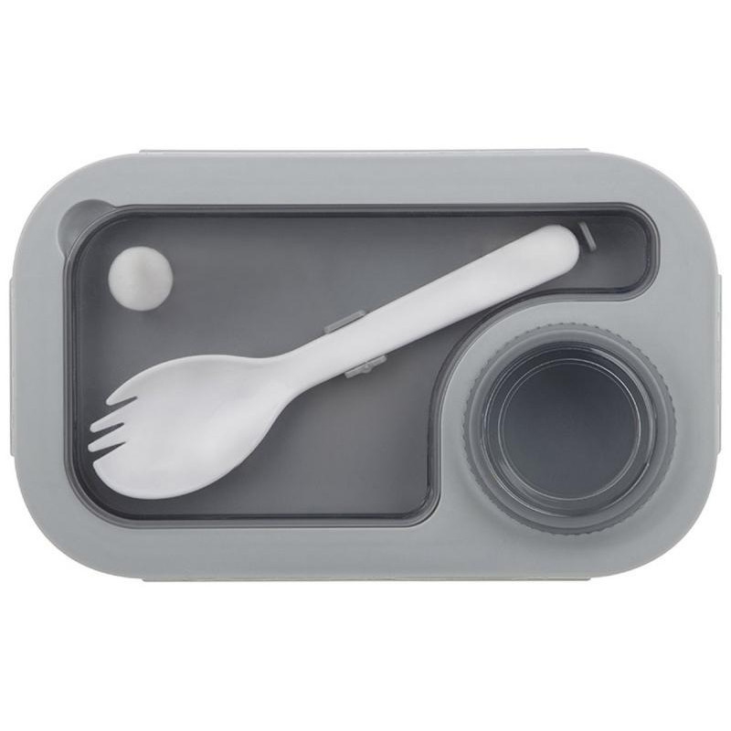 19.5х12.5х7.8см, 850мл, полипропилен/силикон, 2 отделения, ложка-вилка и дополнительный контейнер для соуса в комплекте, можно греть в СВЧ, мыть в пмм, использовать для заморозки