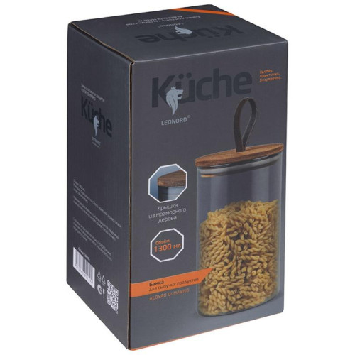 Банка стеклянная 1.3л для сыпучих продуктов Leonord ALBERO DI MARMO с крышкой MALLONY 108285