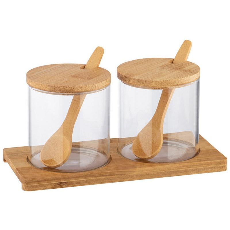 2штх0.3л, стекло/бамбук, с ложечками и подставкой из бамбука