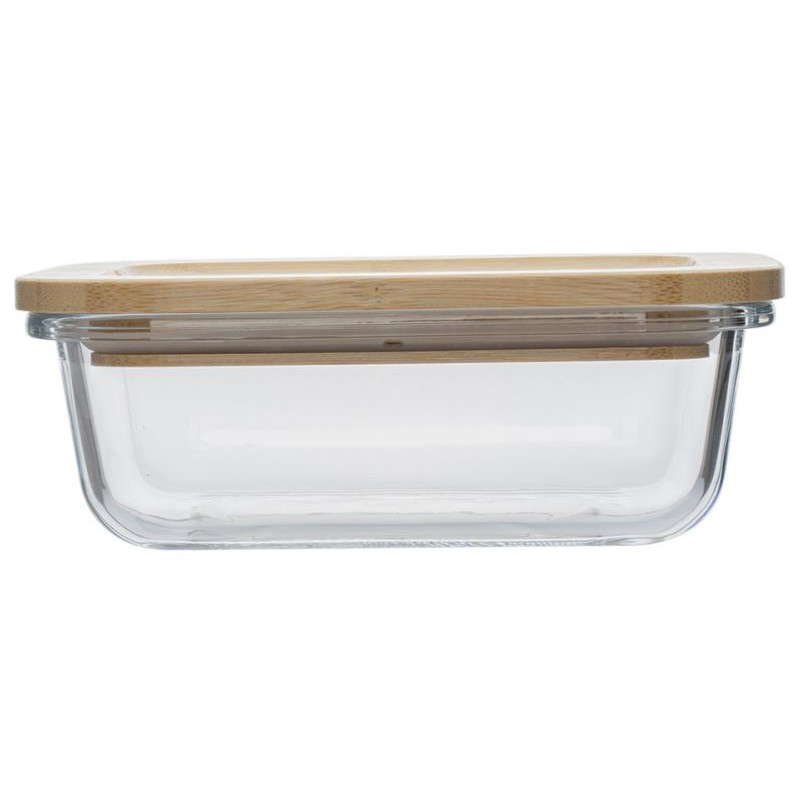 370мл, 14.5х10.5х5.5см, прямоугольный, контейнер-боросиликатное стекло, крышка- бамбук, упаковка-термоусадочная пленка, контейнер можно быть в ПСМ без крышки, отверстий для пара нет