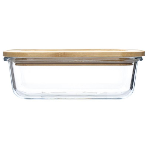 640мл, 17х12.5х5.8см, прямоугольный, контейнер-боросиликатное стекло, крышка- бамбук, упаковка-термоусадочная пленка, контейнер можно быть в ПСМ без крышки, отверстий для пара нет