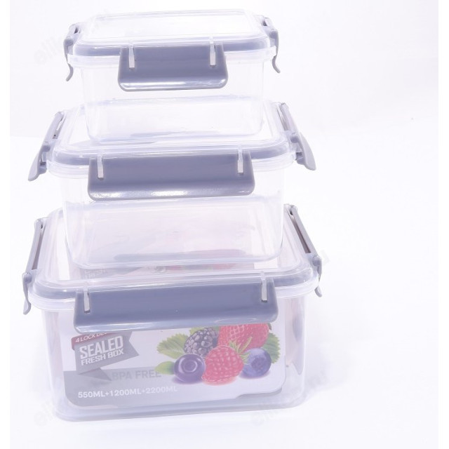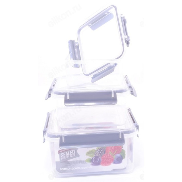 Набор контейнеров с крышками на защелках. Объем: 2,2л (18х18х9см), 1,2л (16х16х7см), 0,55л (13х13х6см)