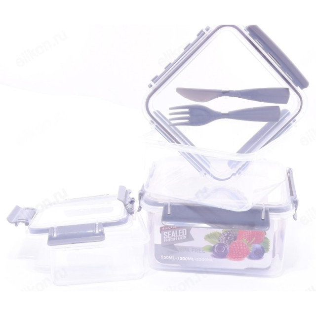 Набор контейнеров пластик XG8208A-1 3шт +нож+вилка