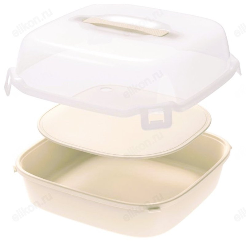 Тортница АП772 30х30х14см с ручкой, слоновая кость