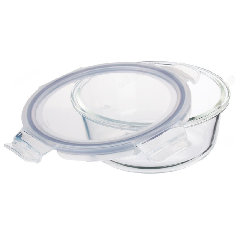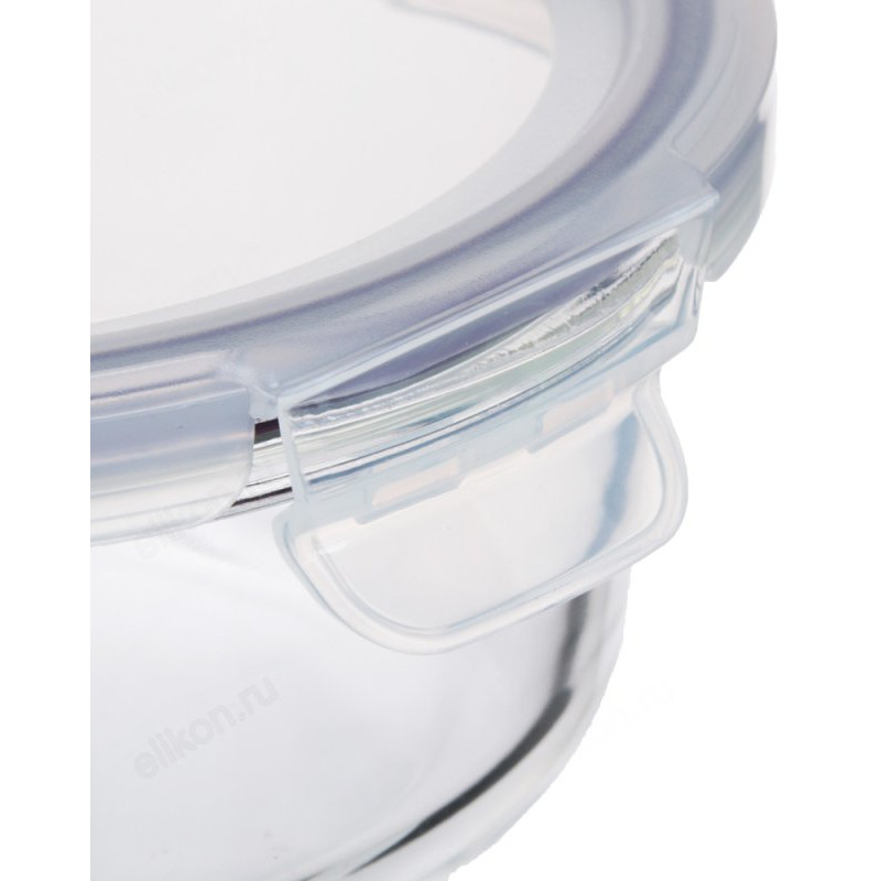 Контейнер для хранения продуктов изготовлен из прочного пищевого пластика. Для более надежного крепления и сохранения герметичности на крышке имеются удобные защелки.