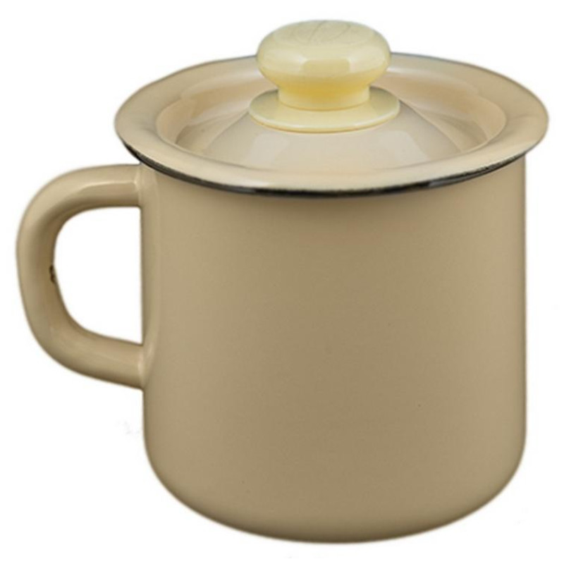 Кружка 1.0л эмалированная, с крышкой, палевая ЭМАЛЬ (СИБ.ТОВАРЫ) С402073П