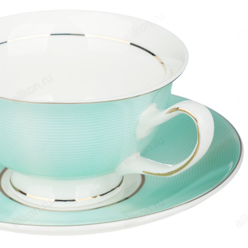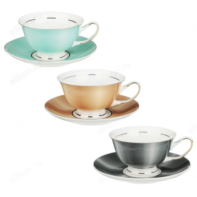 Набор подходит для подачи чая и кофе. Выполнен из костяного фарфора, который характеризуется повышенной прочностью, оставаясь легким и воздушным.