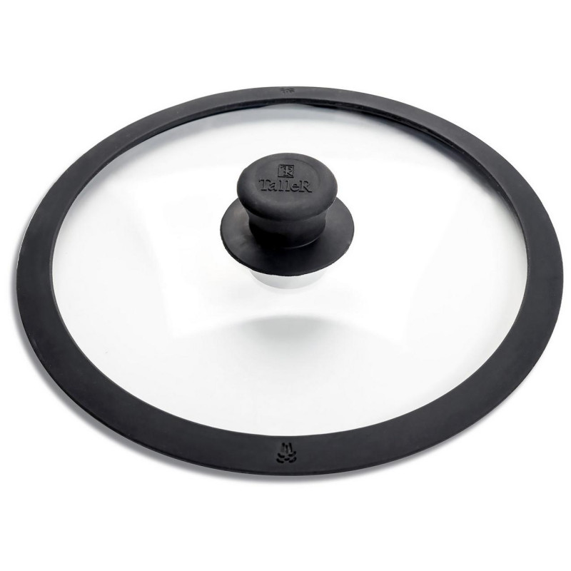 20см, термостойкое стекло, силиконовый обод черного цвета, отверстия для паровыпуска находятся в ободе, пригодна для ПММ, упаковка п/э пакет