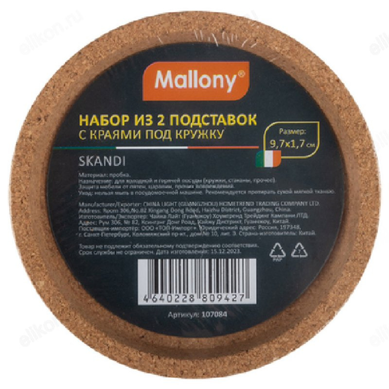 Подставка для кружки Mallony Skandi пробка 107084 2шт