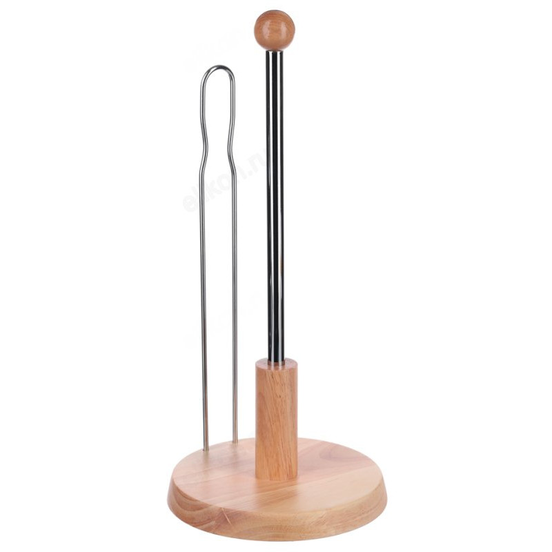 Устойчивая подставка изготовлена из дерева и нержавеющей стали, имеет широкое основание и боковой фиксатор, который не позволит рулону раскрутиться.